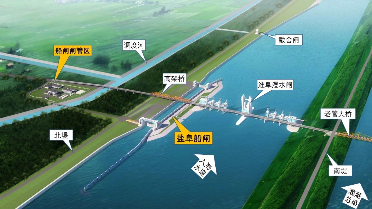 本次開工的鹽城段,工程概算總投資15.06億元,建設周期4年,按二級航道標準設計,航道全長45.2公里,設計最大船舶噸級2000噸級,航道尺度為4×80×550米(水深×底寬×最小彎曲半徑),配套建設300×34×5米(閘室長×寬×門檻水深)規模的鹽阜船閘及相關附屬工程。工程深度融合水利與航道功能,依托淮河入海水道二期拓寬挖深成果,建成后將顯著提升區域水資源綜合利用效益。