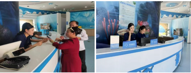 游客服務中心的電話鈴聲,是駱陽國慶假期的“背景音”。“您好,大豐港海洋世界,請問有什么可以幫您?”她的聲音早已沙啞,語氣卻始終溫和耐心。整個國慶,她日均接待游客數百人、接聽咨詢電話幾十通,從場館開放時間到演出安排,從海豚互動預約到失物協查,每一個問題都被細致回應。