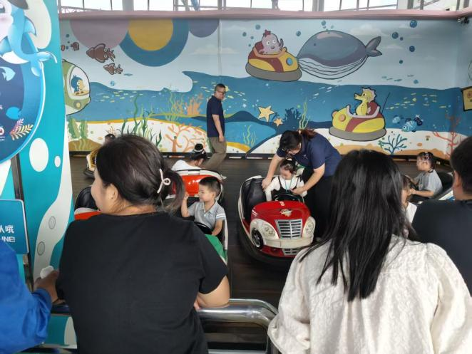 在游客視野之外,科技館工作人員每天回應著上百次咨詢,從核銷碼出示到設備使用,從路線指引到衛生間位置,不讓一位游客“走彎路”;海洋樂園工作人員全程陪護兒童游玩,每場體驗前后都細致巡檢設備電路,用“零死角”排查換來“零事故”保障。