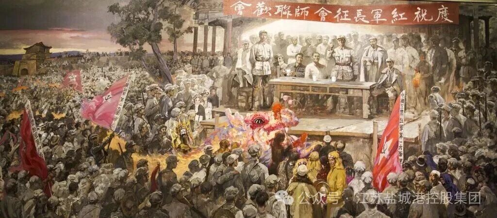 甘肅會寧,紅軍長征勝利紀念館,反映會寧會師大會場景的油畫。