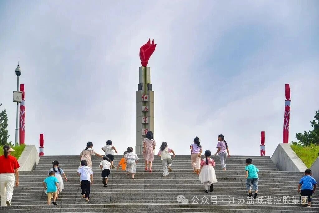 江西遂川,孩子們在大人的陪伴下,瞻仰紅六軍團長征先遣紀念碑。