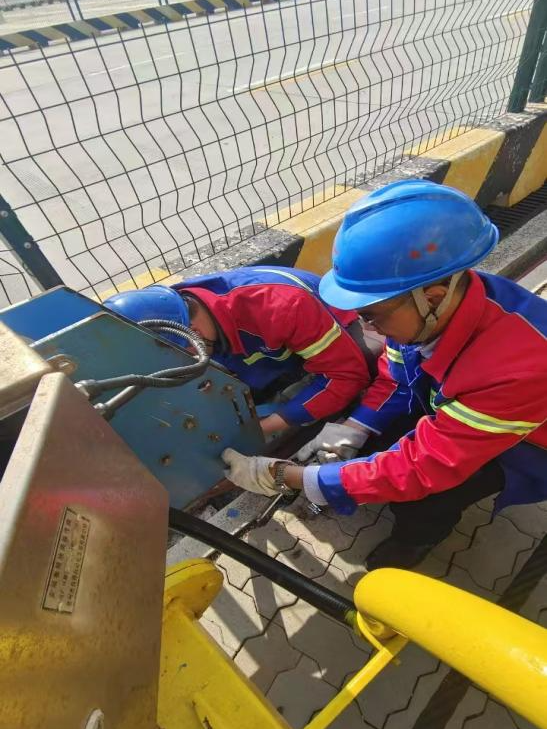 設備運行難免會出現各類故障,一旦設備故障,維保人員就會迅速變身成為“修理工”,爭分奪秒地進行搶修。他們熟練地操作著各種工具,拆解、修復、組裝,每一個動作都干脆利落。無論是別人歡聚的節假日還是夢鼾入睡的夜晚,只要港口設備維修有需要,他們總能在第一時間抵達現場,用他們的執著和敬業保障設備的正常運行。