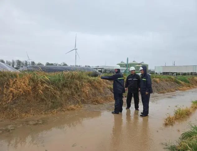 循環(huán)農(nóng)業(yè)公司迅速調(diào)動(dòng)人員,對(duì)沼液池展開膜抽水作業(yè),有效降低了沼液池的液位,減少了因臺(tái)風(fēng)引發(fā)強(qiáng)降雨可能導(dǎo)致的沼液外溢風(fēng)險(xiǎn)。在作業(yè)過程中,工作人員嚴(yán)格遵循操作規(guī)程,確保抽水工作高效且安全,通過沙袋堆砌和加固支撐等措施,對(duì)沼液池的邊坡進(jìn)行加固處理,提升了邊坡的穩(wěn)定性,防止了因雨水沖刷導(dǎo)致的坍塌等安全隱患。