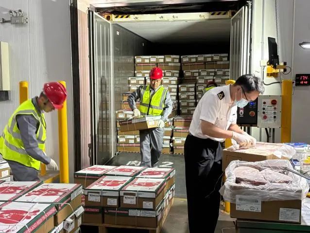 保稅物流中心與速味達公司聯合構建了“原產地直采—全程冷鏈—保稅倉儲”的一體化供應鏈模式,充分運用區內先進智能溫控設備,對溫度進行精準調控,且溫度穩定性極高,波動幅度控制在極小范圍內,確保牛肉從入庫到存儲全程保持新鮮狀態,最大程度保留其優良品質。同時為助力澳洲牛肉快速入區,中心充分發揮自身在報關、報檢等環節的資源整合能力,為該批貨物開通了專屬“便捷通道”。通過與海關部門的高效聯動,內部流程的優化升級,大幅縮短貨物從到港到入庫的時間,實現澳洲牛肉的快速流轉。