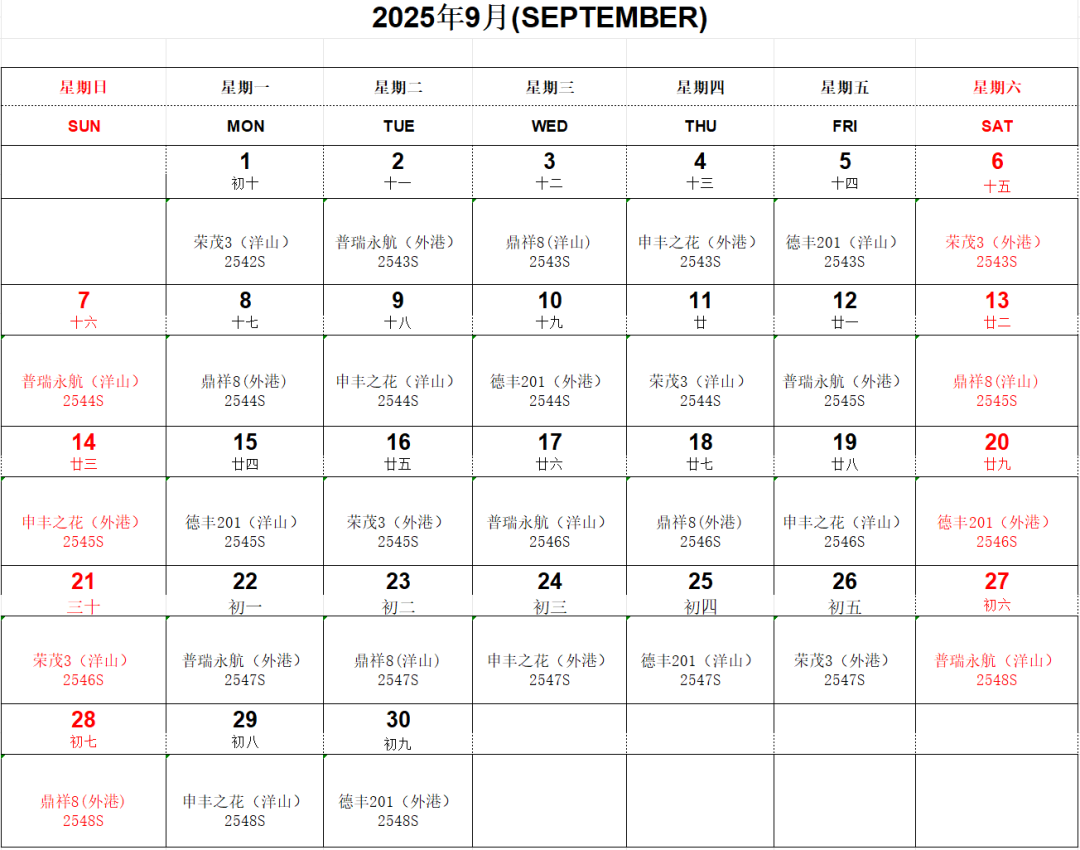 “滬鹽專線”9月船期表已經新鮮出爐!
