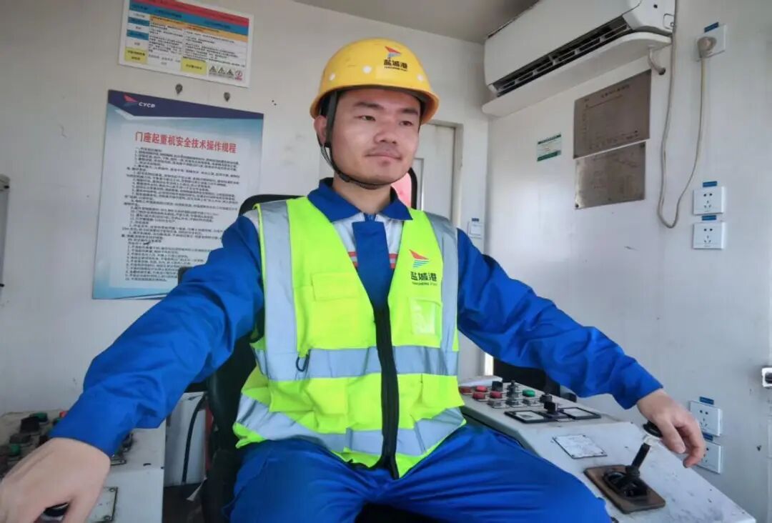 在通用碼頭分公司,門機(jī)司機(jī)朱培文眼神專注、操作嫻熟。抓斗在他手中精準(zhǔn)起落、平穩(wěn)移動,猶如指揮一場無聲的交響。他說:“國慶堅守崗位,就是我獻(xiàn)給祖國最好的禮物?!?/p>