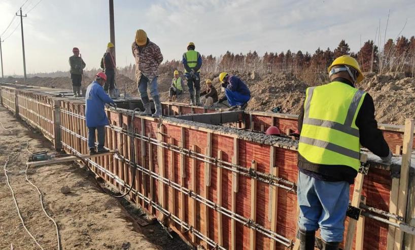 連日來,鹽農華豐農業和海昌農業高標準農田建設工地上,多臺工程機械正在新建的防滲渠旁開足馬力加緊作業,幾名工人在鋼筋模板間忙著澆筑混凝土;不遠處,幾名工人在忙著綁扎鋼筋,為下一步安裝模板、澆筑混凝土做準備。自項目開工以來,公司立足實際,搶抓晴好天氣,科學組織施工力量和機械設備,緊盯時間節點,鉚足干勁搶工會戰。渠道開挖、鋼筋綁扎、模板安裝及混凝土澆筑有序推進,涵洞開挖及澆筑同步展開。接下來,將繼續以“搶時間、提效率、強質量”為核心,全力推進橋涵、溝道襯砌、砂石路面層等關鍵工程建設,確保項目早日建成投用,為農業生產提質增效奠定堅實基礎。