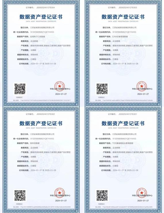 在科技創新引領下,“十四五”期間,鹽城港集團智慧港口建設成效顯著。大內網、主數據中心建成運行,7個一體化內控信息化系統陸續上線,穩固跨港區協同管理的技術根基。一體化集裝箱、散雜貨生產管理系統全面鋪開,綜合作業效率提升5%以上。電子口岸平臺整合多元服務功能,業務辦理時間平均縮短30%。去年推出的網上營業廳,以一站式在線服務實現“數據多跑路、客戶少跑腿”。值得一提的是,集團順利完成電子口岸平臺等系統的數據資產質量評價與價值評估,獲得《數據資產登記證書》,成為鹽城市首批完成數據資產登記的企業,為行業數字化轉型提供了可復制的實踐樣本。